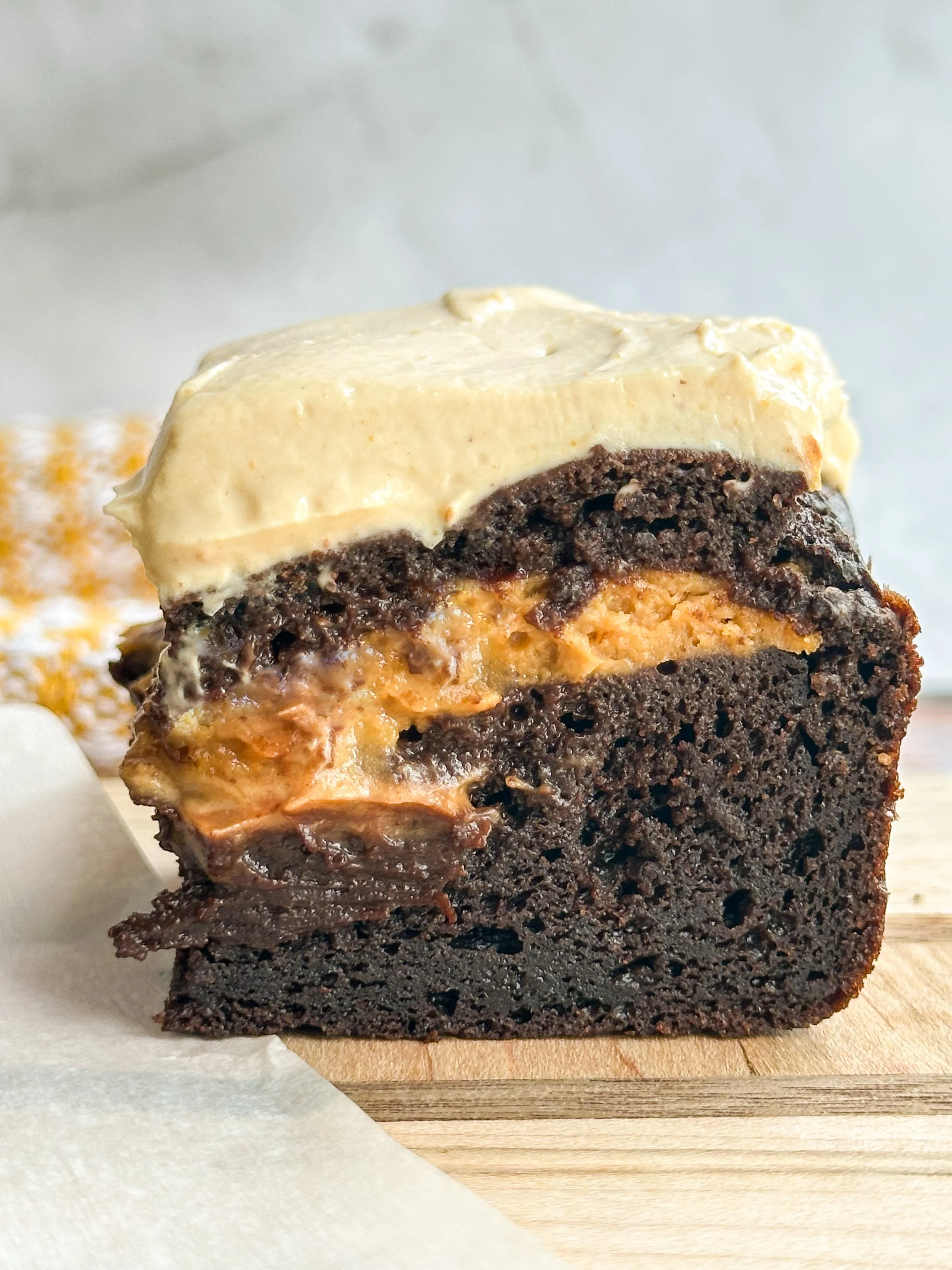 Salted Caramel Peanut Butter Stuffed Protein Brownies (Refined Sugar Free, High Protein)